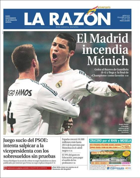 Το κατόρθωμα της “βασίλισσας” ήταν πρώτο θέμα τόσο στις αθλητικές όσο και στις πολιτικές εφημερίδες της Ισπανίας. Από την πλευρά τους οι Γερμανοί έκαναν λόγο για “ναυάγιο” της ομάδας του Πεπ Γκουαρντιόλα.