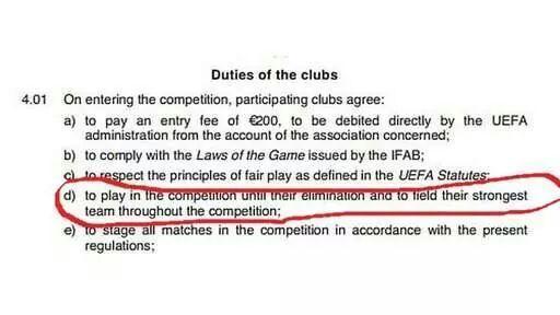 Φαίνεται τρελό, όμως δεν είναι. Η ΟΥΕΦΑ έχει ξεκάθαρο κανονισμό στη κορυφαία διασυλλογική διοργάνωση, οι ομάδες να χρησιμοποιούν τους καλύτερους που έχουν. Ο Ρότζερς δε χρησιμοποίησε τους Μπαλοτέλι, Τζέραρντ, Χέντερσον, Τζόνσον, Κουτίνιο, Λόβρεν και Στέρλινγκ(οι οποίοι συνήθως είναι βασικοί) χωρίς λόγο και πλέον η ομάδα του κινδυνεύει με τιμωρία.