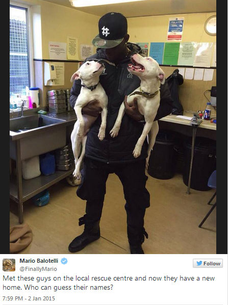 Δύο αδέσποτα σκυλιά τα οποία ήταν σε κέντρο υποδοχής ζώων υιοθέτησε ο επιθετικός της Λίβερπουλ, Μάριο Μπαλοτέλι.