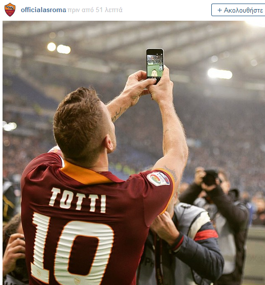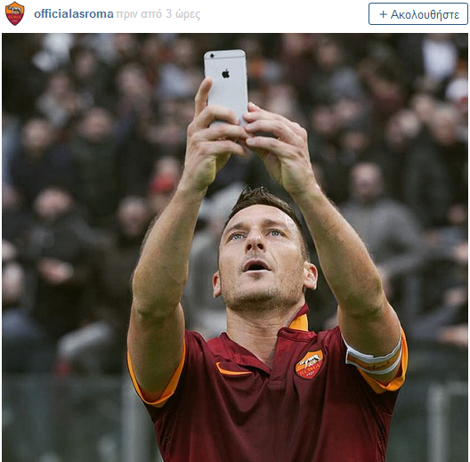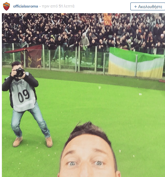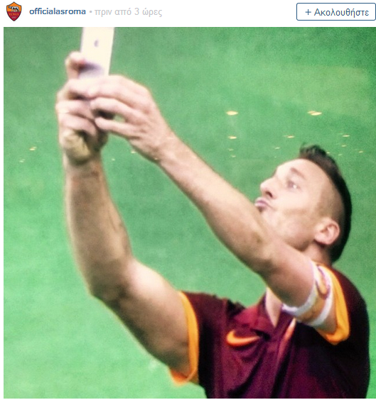 Πρώτο θέμα είναι στην Ιταλία αυτή την στιγμή η selfie του Φραντσέσκο Τότι μετά το δεύτερο γκολ που σημείωσε ο αρχηγός της Ρόμα στο ντέρμπι με την Λάτσιο.