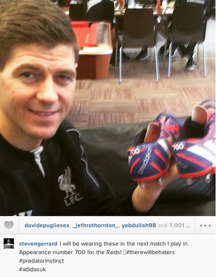 Περήφανος για τα νέα του παπούτσια που θα φορέσει στο παιχνίδι κόντρα στη Γουέστ Χαμ στο 700ο με τη φανέλα της Λίβερπουλ αισθάνεται ο Στίβεν Τζέραρντ.