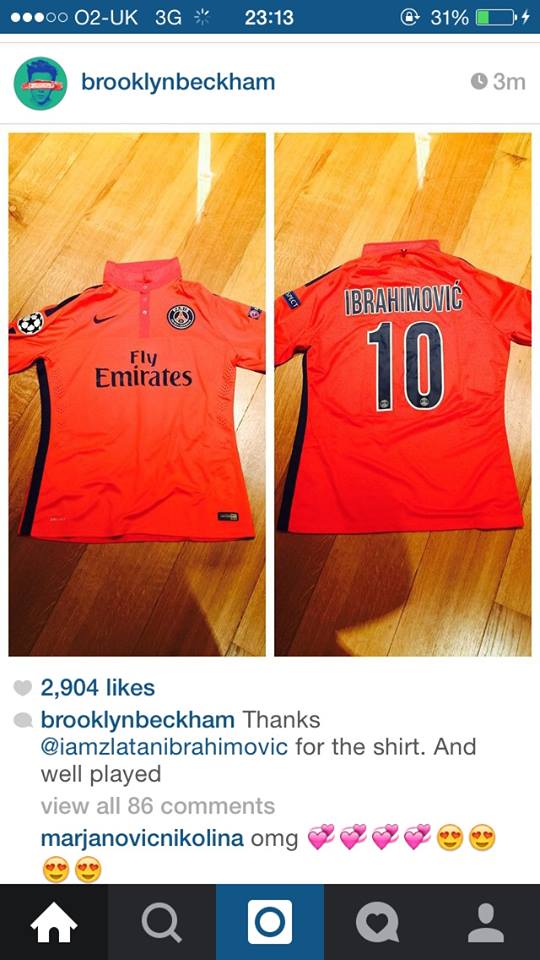 Ωστόσο, εκείνος που κατάφερε να πάρει τη φανέλα του “Ίμπρα” ήταν ο μεγάλος γιος του Ντέιβιντ Μπέκαμ, Μπρούκλιν, όπως έκανε γνωστό και μέσω του προσωικού του λογαριασμού στο Instagram.