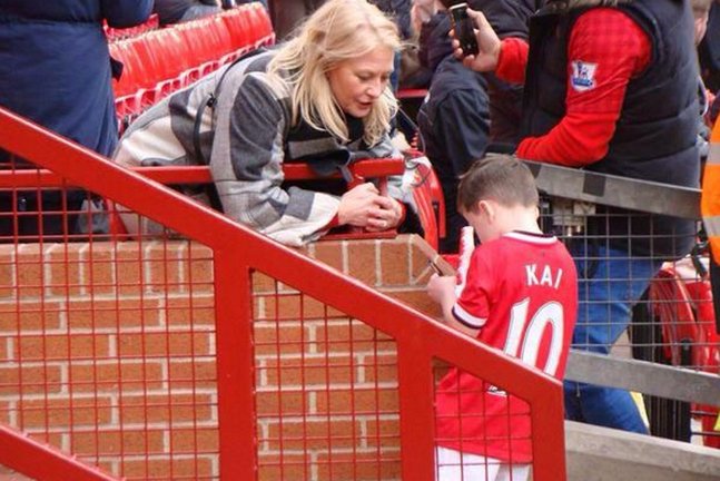 Ο γιος του Ρούνεϊ, Κάι, βρέθηκε στις κερκίδες του "Όλντ Τράφορντ" και μάλιστα μοίρασε αυτόγραφα αν και είναι μόλις 5 χρονών.