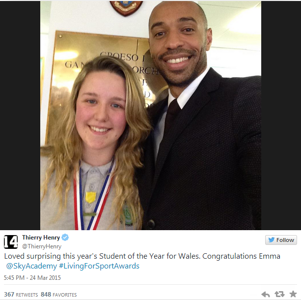 Από τότε που σταμάτησε από την ενεργό δράση ο Τιερί Ανρί φοράει ολοένα και πιο συχνά κοστούμι και επίσημα ρούχα για λογαριασμό του “Sky Sports”.