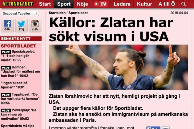 Αυτό τουλάχιστον υποστηρίζει με δημοσίευμά της η σουηδική εφημερίδα “Aftonbladet” που σύμφωνα με πηγές της έχει μάθει πως ο επιθετικός της Παρί Σεν Ζερμέν έχει καταθέσει όλα τα απαραίτητα έγγραφα για αμερικανική βίζα.