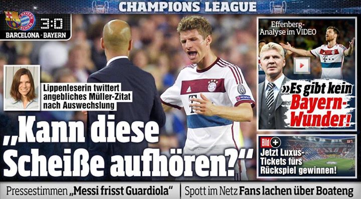 Συγκεκριμένα ο Γερμανός παίκτης έγινε αλλαγή στο 79′ όταν οι Καταλανοί ήταν μπροστά με ένα γκολ και όπως αναφέρουν τα γερμανικά ΜΜΕ ο Μίλερ φέρεται να είπε με έντονο ύφος στον Γκουαρντιόλα “πότε αυτή η μ@λ@κί@ θα τελειώσει;” αναφερόμενος στην τακτική που είχε ακολουθήσει η Μπάγερν.