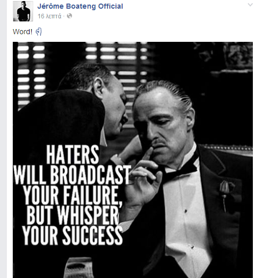 Ο Μπόατενγκ μπορεί να άκουσε πολλά, αλλά είχε μία απάντηση για τους “haters” ανεβάζοντας στον προσωπικό του λογαριασμό στο Facebook μία φωτογραφία από την ταινία “ο νονός”.