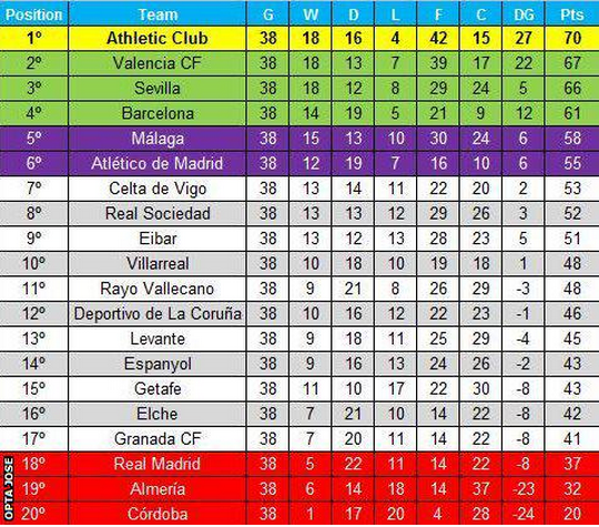 Με αυτό το σενάριο η Αθλέτικ Μπιλμπάο θα ήταν πρωταθλήτρια, ενώ η Μπαρτσελόνα θα τερμάτιζε στην τέταρτη θέση της Πριμέρα Ντιβιζιόν.