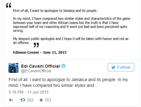 Λίγες ώρες μετά το σάλο που προκάλεσε ο έμπειρος φορ ζήτησε συγγνώμη από την Τζαμάικα και τους Τζαμαϊκανούς.