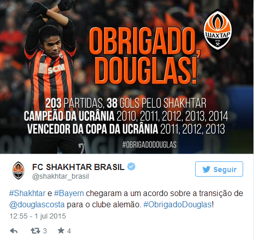 Αυτή η μεταγραφή για τους Βαυαρούς κόστισε 30 εκατομμύρια ευρώ με την Σαχτάρ να τον ευχαριστήσει για την προσφορά του μέσω της επίσημης ιστοσελίδας της στο twitter.