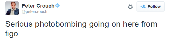 Μάλιστα, πριν την έναρξη του αγώνα όλοι οι ποδοσφαιριστές μαζεύτηκαν και έβγαλαν τις καθιερωμένες φωτογραφίες με τον φορ της Στόουκ να γράφει μετά το τέλος της αναμέτρησης πως ο παλαίμαχος Πορτογάλος χαφ προσπάθησε να κάνει photobomb!
