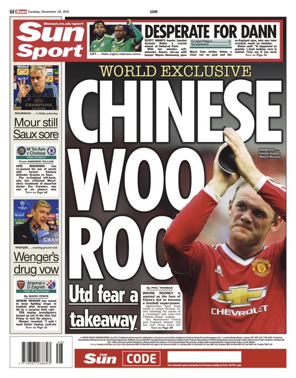 Όπως αναφέρουν δημοσιεύματα στην Αγγλία, στην Κίνα ψάχνονται για ένα αστέρι που θα δώσει λάμψη στο πρωτάθλημα τους και ο Ρούνεϊ θεωρείται ιδανική περίπτωση.