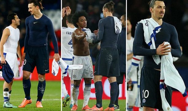 Και σίγουρα δεν θα πρέπει να του προκάλεσε αίσθηση το γεγονός πως μετά τη λήξη του αγώνα της Παρί με την Τσέλσι τόσο ο ο Πέδρο όσο και ο Γουίλιαν αντάλλαξαν φανέλα μαζί του! zlatan faneles