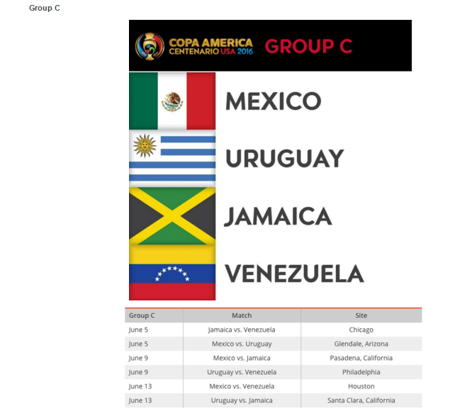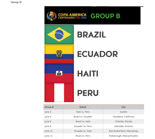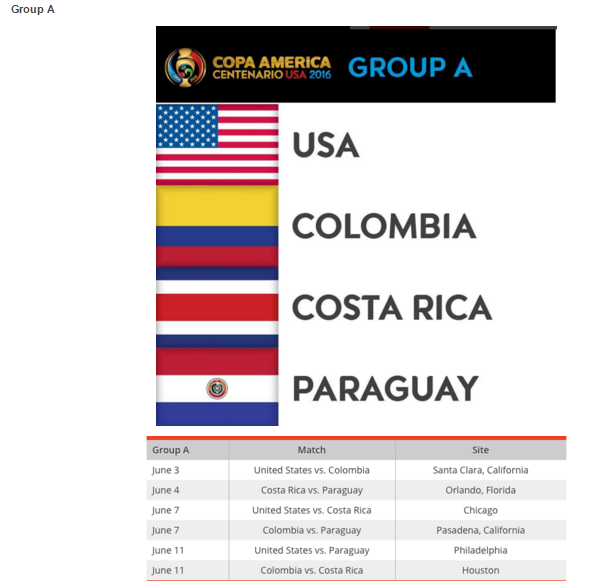 Η διοργάνωση θα ξεκινήσει με την αναμέτρηση των Ηνωμένων Πολιτειών με την Κολομβία στις 3 Ιουνίου ενώ το παιχνίδι με το οποίο θα κλείσει η φάση των ομίλων θα γίνει στις 14 του ίδιου μήνα και θα είναι αυτό της Αργεντινής με την Βολιβία.