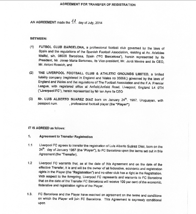 Όπως έγινε γνωστό πριν από δύο χρόνια οι Καταλανοί ήρθαν σε συμφωνία με τους Άγγλους για τον Ουρουγουανό στράικερ και είχαν συμφωνήσει πως θα τους έδιναν 13 εκατομμύρια λίρες στις 31/7/14, άλλα τόσα στις 31/1/15, το ίδιο ποσό θα ξόδευαν και στις 31/7/15, όπως και στις 31/1/16 με την τελευταία δώσει να είναι 12 εκατομμύρια και 980 χιλιάδες για τις 31/7/16.