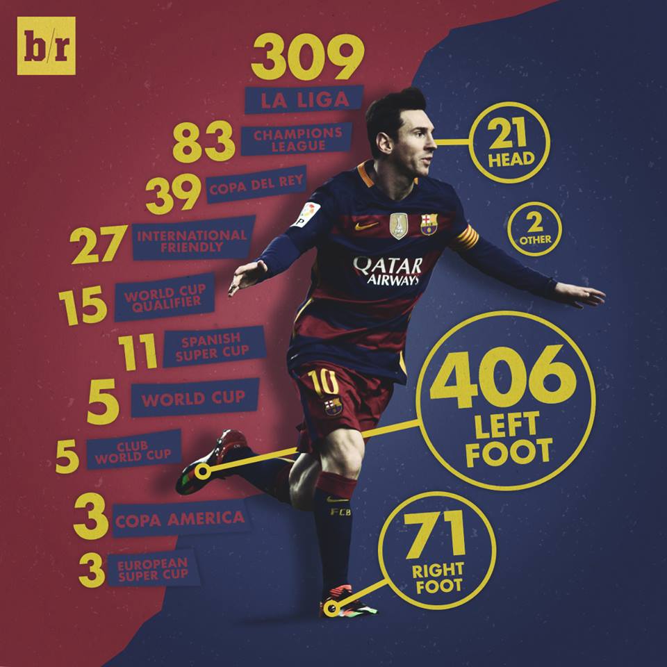 Η ήττα από τις “νυχτερίδες” με σκορ 2-1 μπορεί να μην τον άφησε να το χαρεί, όπως θα ήθελε, αλλά δεν παύει να είναι ένα σημαντικό κατόρθωμα για τον “Λέο” και στην παρακάτω φωτογραφία μπορείτε να δείτε σε ποιες διοργανώσεις και με ποιο μέρος του σώματός του έχει πετύχει τα περισσότερα γκολ! mesi 500 goal2