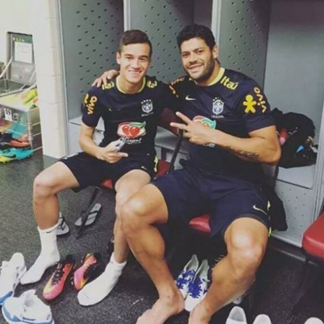 Παιδάκι φαντάζει ο Φελίπε Κουτίνιο δίπλα στον συμπαίκτη του στην εθνική ομάδα της Βραζιλίας, Χουλκ.