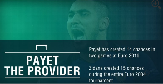 Συν τοις άλλοις, ο 29χρονος άσος της Γουέστ Χαμ έχει πετύχει να δημιουργήσει 14 ευκαιρίες στους πρώτους δύο αγώνες των ομίλων του EURO. O συγκεκριμένος αριθμός είναι ακόμα πιο εντυπωσιακός αν τεθεί σε σύγκριση με τα αντίστοιχα νούμερα του θρύλου της εθνικής Γαλλίας, Ζινεντίν Ζιντάν.