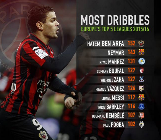Τον καλύτερο ντριμπλέρ του κόσμου, σύμφωνα με τα στατιστικά της περασμένης σεζόν, έκανε δικό της η Παρί Σεν Ζερμέν: τον Χατέμ Μπεν Αρφά.