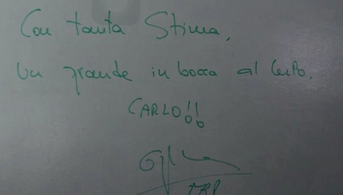 “Με πολλή αγάπη! Να έχεις καλή τύχη Κάρλο”, ήταν τα λόγια του πρώην τεχνικού του γερμανικού συλλόγου στον νυν. calro mn