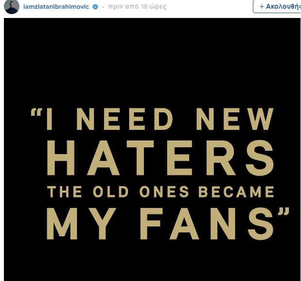 “Θέλω νέους haters,γιατί οι παλιοί που είχα έγιναν θαυμαστές μου”. haters ibra