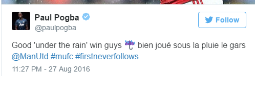 Πλέον ο Γάλλος μέσος ανήκει στη Μάντσεστερ Γιουνάιτεντ και προσπαθεί να τα συνηθίσει όλα. Από τον τρόπο που αγωνίζονται οι Άγγλοι μέχρι και τις καιρικές συνθήκες που δεν είναι και ιδανικές, αφού από Αύγουστο μήνα οι θερμοκρασίες είναι ιδιαίτερα χαμηλές και οι βροχοπτώσεις είναι σύνηθες φαινόμενο, όπως και στο εκτός έδρας παιχνίδι με τη Χαλ που είχαν… ανοίξει οι ουρανοί.