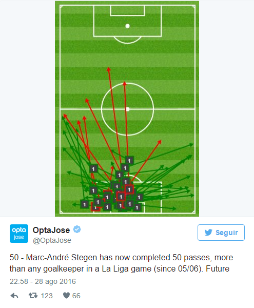 Ο Γερμανός είχε 51 πάσες με ποσοστό επιτυχίας 82.3%, αριθμός που αποτελεί νέο ρεκόρ. Οι Αγγλοι μάλιστα σύγκριναν τους δύο τερματοφύλακες, βλέποντας πως ο Μπράβο στην πρεμιέρα με τη Μπέτις είχε μόλις 16 πάσες.