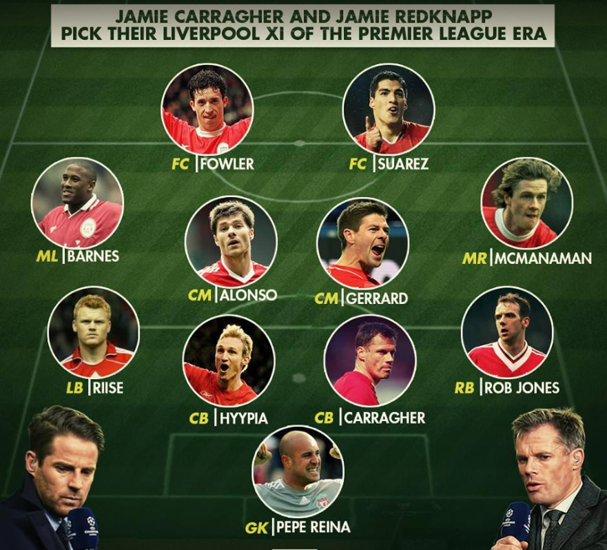 Tζέιμι Κάραχερ και Τζέιμι Ρέντναπ συνέθεσαν την κορυφαία ενδεκάδα της Λίβερπουλ στην εποχή της Πρέμιερ Λιγκ.