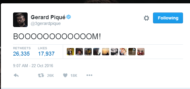 Όμως αυτό δεν εμπόδισε τον Πικέ να “τιτιβίσει” για το σπουδαίο “διπλό” των Καταλανών, γράφοντας: “Boooom”.
