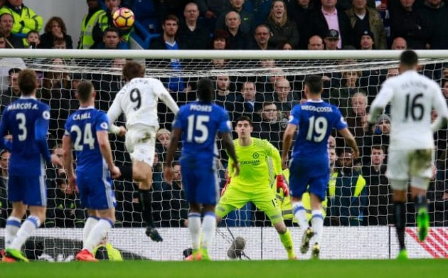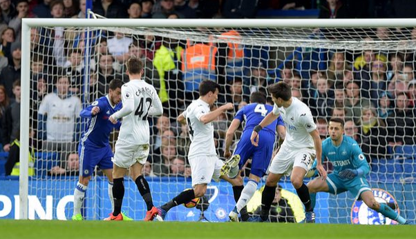 Στο πλαίσιο της 26ης αγωνιστικής η Τσέλσι υποδέχτηκε στο “Στάμφορντ Μπριτζ” την Σουόνσι. Οι “μπλε” πραγματοποίησαν ένα ακόμη βήμα προς τον τίτλο μετά την τελική τους επικράτηση επί των “κύκνων” με 3-1 με το σκορ να κολακεύει τους γηπεδούχους. Κορυφαίοι για την ομάδα του Αντόνιο Κόντε ήταν ο Φάμπρεγκας με το ολοκληρωτικό του παιχνίδι, ο Καντέ ο οποίος για ένα ακόμη αγώνα αναχαίτιζε τις αντίπαλες επιθέσεις και ο Αζάρ, ο οποίος ταλαιπωρούσε συνεχώς την αντίπαλη άμυνα.