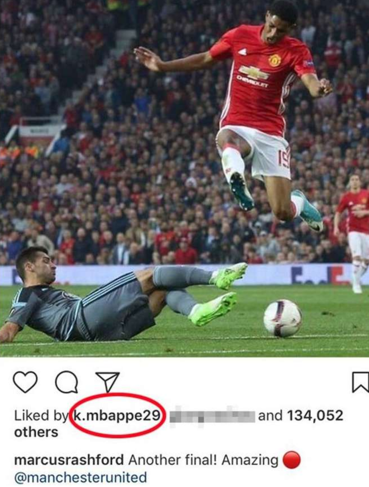 Παρ΄όλα αυτά, μία κίνηση του 18χρονου στράικερ στο ίνσταγκραμ ήταν αρκετή για να πυροδοτήσει τα σενάρια φυγής του για λογαριασμό της Μάντσεστερ Γιουνάιτεντ. Ειδικότερα, ο Εμπαπέ αντέδρασε σε μία φωτογραφία που ανάρτησε ο στράικερ των “κόκκινων διαβόλων”, Μάρκους Ράσφορντ, ,μετά την πρόκριση της Γιουνάιτεντ στον τελικό του Γιουρόπα Λιγκ στην οποία υπήρχε η εξής λεζάντα: “Ένας ακόμη τελικός. Τέλειο”.