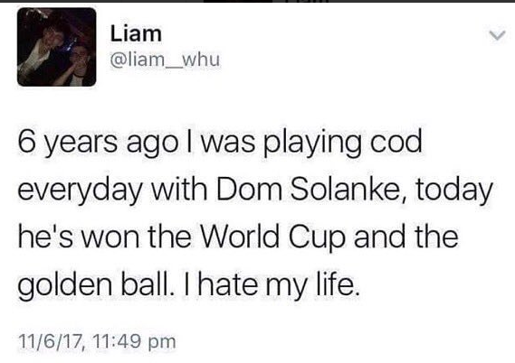 Όμως όπως και να έχει ο νεαρός φορ έζησε μία τρομερή στιγμή με την εθνική ομάδα της χώρας του, καθώς κατέκτησε το Παγκόσμιο Κύπελλο U20, με αποτέλεσμα ένας από τους παλιούς του φίλους, ο οποίος συνήθιζε να παίζει ηλεκτρονικά παιχνίδια μαζί του να αναρωτιέται που… βρίσκεται ο Σολάνκε αυτή την εποχή και σε τι φάση είναι εκείνος.