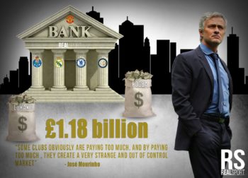 Ο προπονητής της Μάντσεστερ Γιουνάιτεντ, Ζοσέ Μουρίνιο σε πρόσφατη δήλωσή του υποστήριξε πως τα ποσά που ξοδεύονται πλέον σε μεταγραφές είναι υπερβολικά πολλά. Ναι ο Μουρίνιο το είπε: