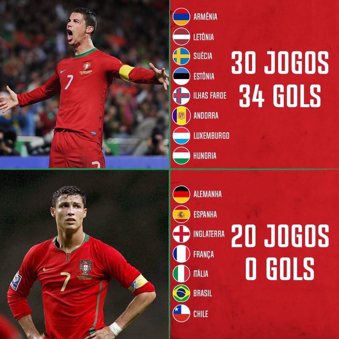 Πιο συγκεκριμένα ο 32χρονος σούπερ σταρ τα περισσότερα γκολ του με τη Πορτογαλία τα έχει πανηγυρίσει με “μικρές” ομάδες, ενώ απέναντι στις “μεγάλες” είναι άφαντος μιας και δεν έχει πετύχει ούτε… ένα! Αν και θα μπορούσε να πει κάποιος πως από τις φωτεινές εξαιρέσεις του είναι η Αργεντινή, η Κροατία και το Βέλγιο, όπου κόντρα σε αυτές τις ισχυρές εθνικές ο Κριστιάνο έχει κάνει αυτό που ξέρει καλύτερα.