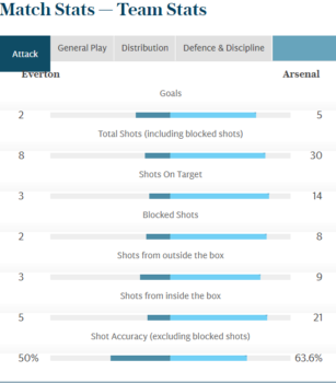 Στο πλαίσιο της 9ης αγωνιστικής της Πρέμιερ Λιγκ η Έβερτον φιλοξένησε στο «Γκούντισον Παρκ» την Άρσεναλ. Οι «κανονιέρηδες» ήταν ανώτεροι από τον αντίπαλο τους και μετά από ένα πρώτο ημίχρονο στο οποίο αναλώθηκαν σε πολλά λάθη, κατόρθωσαν να επιβληθούν της Έβερτον με 5-2. Έτσι, παρέμειναν στο -9 από την πρωτοπόρο Μάντσεστερ Σίτι ενώ τα «ζαχαρωτά» βυθίστηκαν στην 18η θέση της βαθμολογίας.