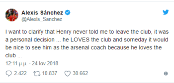 «Θέλω να ξεκαθαρίσω ότι ο Ανρί ποτέ δεν μου είπε να φύγω από την ομάδα. Ήταν μία δική μου απόφαση. Εκείνος ΑΓΑΠΑΕΙ την ομάδα και κάποια μέρα θα ήταν πολύ ωραίο να τον δούμε σαν προπονητή της Άρσεναλ, μιας και αγαπάει την ομάδα».