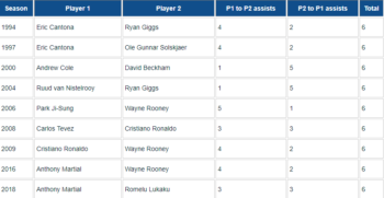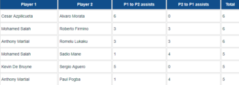 Παράλληλα, η συνεργασία των Λουκάκου και Μαρσιάλ αποδεικνύεται ότι είναι η πιο παραγωγική όσον αφορά γενικότερα τη φετινή Πρέμιερ Λιγκ. Την συγκεκριμένη πρωτιά μοιράζονται μαζί με τους Σαλάχ και Φιρμίνο της Λίβερπουλ και τους Αθπιλικουέτα και Μοράτα της Τσέλσι.