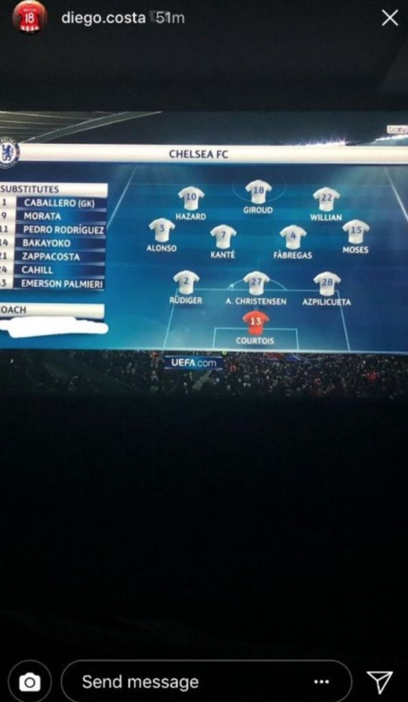Μάλιστα, την ώρα που η 11αδα των “μπλε” εμφανίστηκε στην οθόνη της τηλεόρασής του εκείνος τράβηξε μία φωτογραφία, την ανέβασε. Ωστόσο, αυτό που… μένει από την συγκεκριμένη κίνηση είναι ότι ο Κόστα έσβησε το όνομα του Κόντε το οποίο εμφανιζόταν κάτω αριστερά.