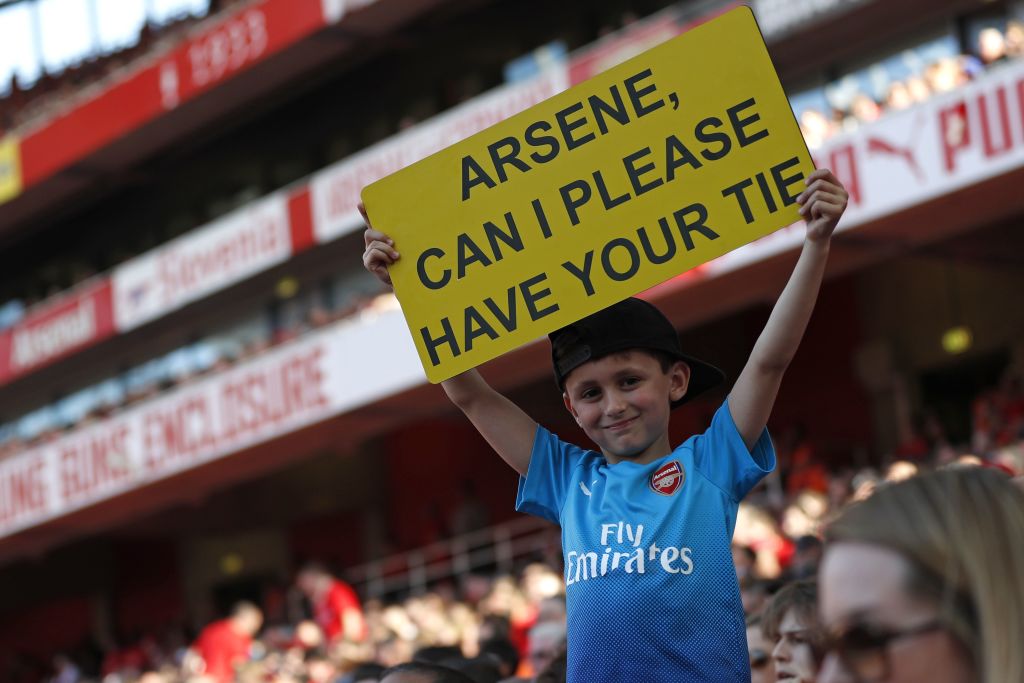Ωστόσο, η σκηνή που έμελλε να μείνει και να τραβήξει πάνω της πολλά βλέμματα ήταν άλλη. Ένας πιτσιρικάς στις εξέδρες είχε ένα πλακάτ που ανέγραφε: “Αρσέν σε παρακαλώ μπορώ να έχω τη γραβάτα σου;”.