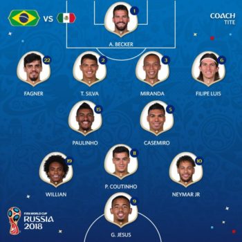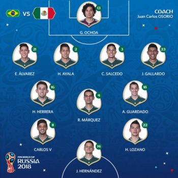 Σε ένα από τα πιο ενδιαφέροντα παιχνίδια της φάσης των 16 η Βραζιλία αντιμετώπισε το Μεξικό με δύο σημαντικές απουσίες  καθώς νοκ άουτ είχαν τεθεί οι Μαρσέλο και Ντανίλο λόγω προβλήματος τραυματισμού. Τη θέση τους πήραν οι Φιλίπε Λουίς και Φάγκνερ. Το Μεξικό από την άλλη ήταν μία απ’ τις ευχάριστες εκπλήξεις του πρώτου γύρου της διοργάνωσης, ενώ η Βραζιλία θεωρείται τη δεδομένη στιγμή το απόλυτο φαβορί για την κατάκτηση του τροπαίου.