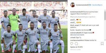 «Καλό το πρώτο παιχνίδι, μπράβο παιδιά!! Μπράβο μπόμπερ!» έγραψε μετά το παιχνίδι ο διεθνής Έλληνας αμυντικός ανεβάζοντας στο instagram την ομαδική φωτογραφία πριν από τη σέντρα του αγώνα με τη «γκρανάτα».