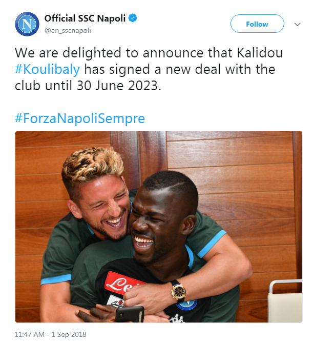 Ήταν κάτι που γνωρίζαμε από την αρχή του Καλοκαιριού, όμως πλέον και επίσημα ο Καλιντού Κουλιμπαλί ανανέωσε τη συνεργασία του με τη Νάπολι μέχρι το Καλοκαίρι του 2023.