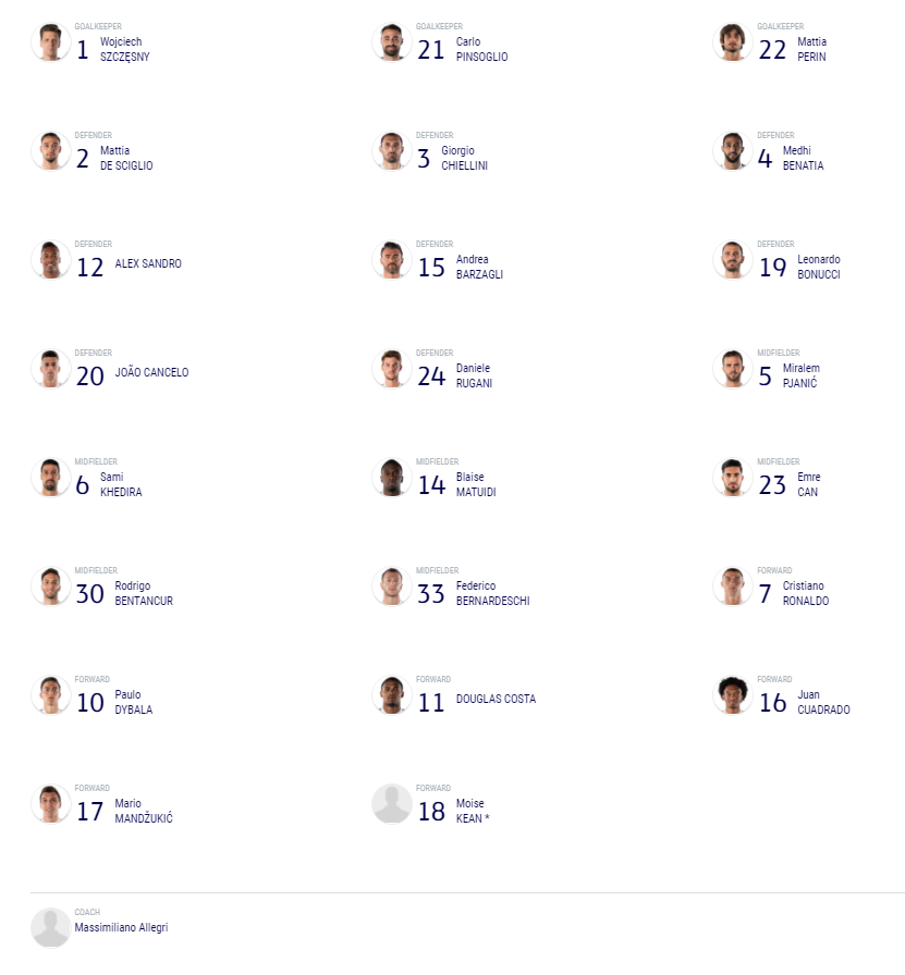 Ίσως η πιο άτυχη ή «καταραμένη» ομάδα του θεσμού. Η ομάδα με τους 7 χαμένους τελικούς, μπαίνει στη νέα διοργάνωση, έχοντας στο ρόστερ της τον -κατά πολλούς- κορυφαίο ποδοσφαιριστή στον πλανήτη. Ο Κριστιάνο Ρονάλντο έχει και την εμπειρία και την τεχνογνωσία της διοργάνωσης, με άπαντες στο Τορίνο να αναρωτιούνται πως: «Αν όχι και τώρα, πότε;».