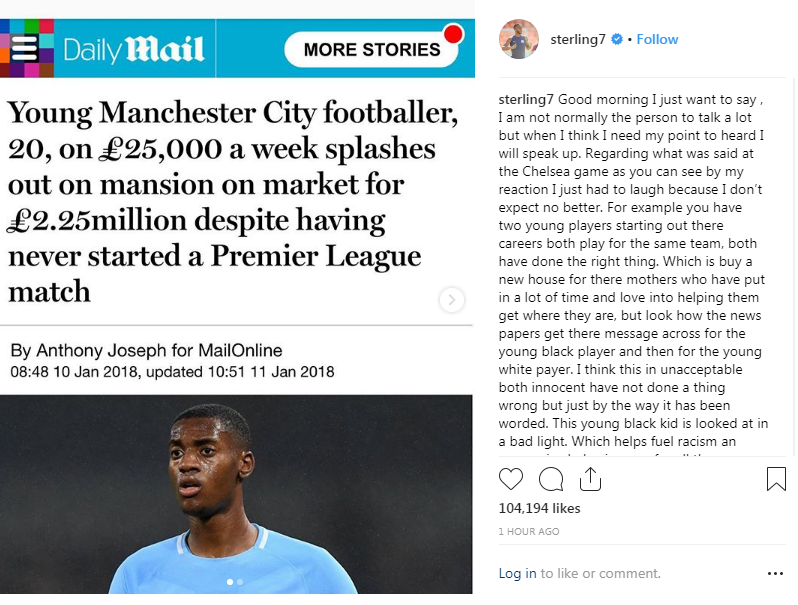 Αυτό που κάνει εντύπωση δεν είναι η “έκρηξη” του Στέρλινγκ. Αλλά ο λόγος που την δημιούργησε. Δεν ήταν η ρατσιστική συμπεριφορά των οπαδών της Τσέλσι προς το πρόσωπό του. Αλλά για το πως ο Τύπος μπορεί να επηρεάσει και εν μέρει να δημιουργήσει ρατσίστες: