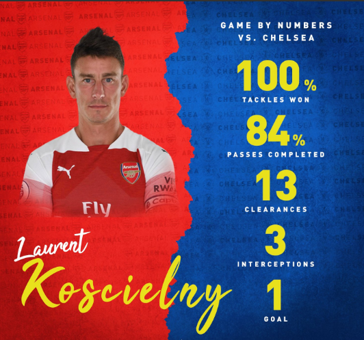 Ο αρχηγός της Άρσεναλ, Λορέν Κοσιελνί, ήταν εκπληκτικός στο νικηφόρο για τους “κανονιέρηδες”, ντέρμπι του Λονδίνου με την Τσέλσι.