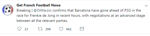 Η αλήθεια είναι πως οδεύουμε σε τέλος. Αργά ή γρήγορα. Από την αρχή η Μπαρτσελόνα έδειχνε να έχει το πάνω χέρι στις διαπραγματεύσεις με τον Ντε Γιονγκ. Άλλωστε και η επιθυμία του παίκτη εη αρχής ήταν να συνεχίσει εκεί την καριέρα του.