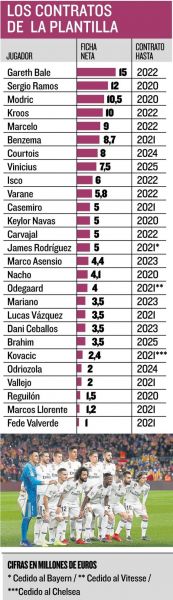 Στην κορυφή της λίστας με τους πιο ακριβοπληρωμένους παίκτες της Ρεάλ βρίσκεται ο Γκάρεθ Μπέιλ. Ο Ουαλός επιθετικός αμείβεται συνολικά με 15 εκατομμύρια ευρώ το χρόνο. Χρήματα, το οποία δεν έχει δικαιολογήσει σχεδόν καθόλου με τη φετινή κάκιστη σεζόν του. Δεύτερος είναι ο αρχηγός της «βασίλισσας», Σέρχιο Ράμος, που βλέπει τον τραπεζικό λογαριασμό του να αυξάνεται κατά 12 εκατομμύρια ευρώ κάθε χρόνο.