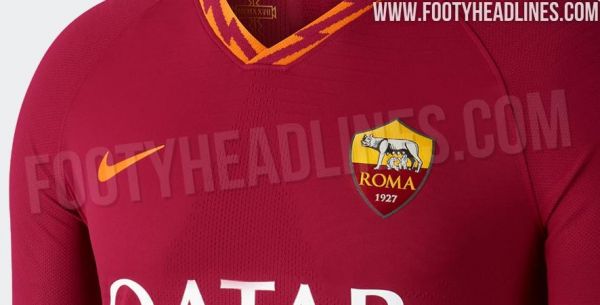 Στα παραδοσιακά χρώματα της Ρόμα οι νέες της εμφανίσεις για την επόμενη σεζόν. Μόνη διαφορά στο «V» και στις άκρες των μανικιών.