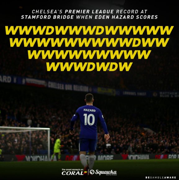 Τότε τα πράγματα είναι μόνο καλά για τους φίλους της αγγλικής ομάδας. Μάλιστα, σύμφωνα με τη γλώσσα των αριθμών όταν ο Βέλγος χαφ βρίσκει δίχτυα στο “Στάμφορντ Μπριτζ”, τότε η ομάδα του συνήθως νικάει. Ωστόσο, ακόμη και αν δεν συμβαίνει αυτό, το μόνο σίγουρο είναι ότι δεν χάνει!