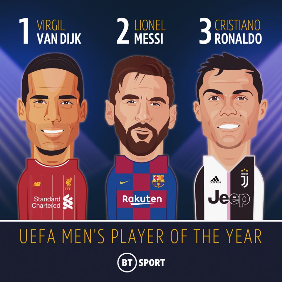 Και φτάνουμε στις υποψηφιότητες για τον καλύτερο ποδοσφαιριστή της περσινής σεζόν στο Τσάμπιονς Λιγκ. Οι δύο “Θεοί” (Κριστιάνο και Μέσι) ήταν σίγουρο πως θα έδιναν γι’ ακόμη μία φορά το “παρών”. Έμελλε να δούμε ποιος θα ήταν εκείνος που θα συμπλήρωνε την τριάδα. Λίγο- πολύ το ξέραμε. Απλά ήταν το τυπικό της όλης υπόθεσης. Εν τέλει αυτός ήταν ο Φαν Ντάικ. Και όχι άδικα εδώ που τα λέμε.